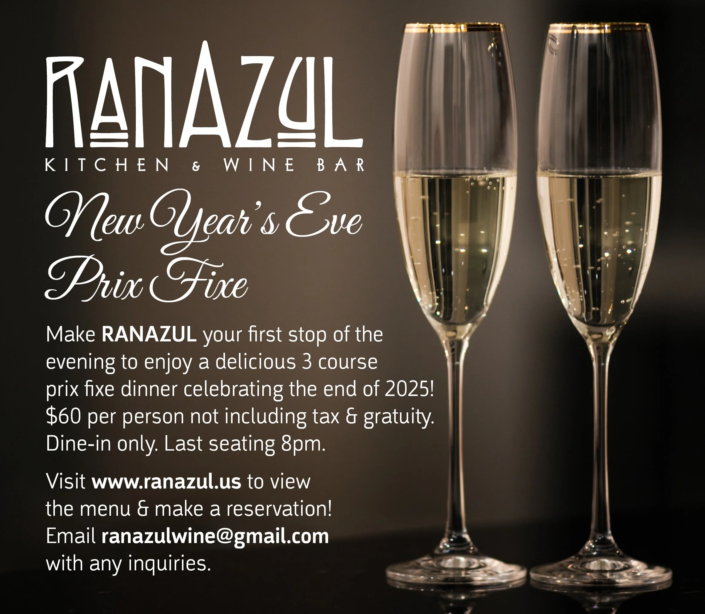 Join us for a special New Year’s Eve prix fixe special! 3 courses for $60 featuring lamb chops and lobster! Visit www.ranazul.us to see the full menu and make a reservation!