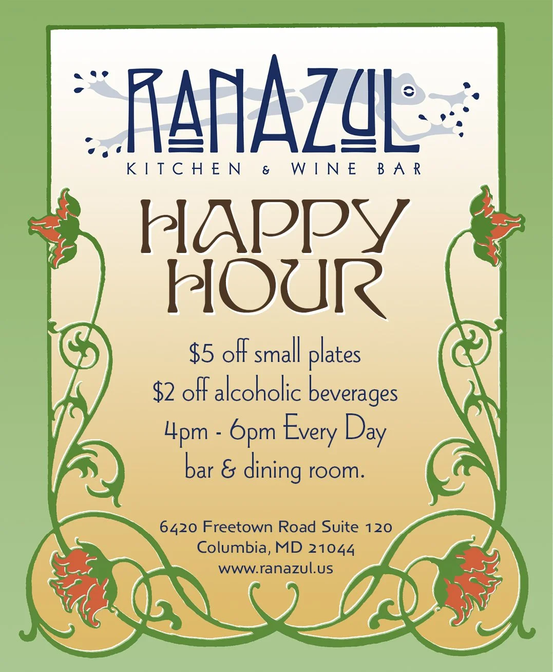 Whether he’s mixing signature cocktails or pouring Maryland craft brews like the Feed the Monkey hefeweizen from Jail Break Brewing Company (Laurel), Reed aspires to turn visitors and regulars into connected, longstanding Ranazul cadre.