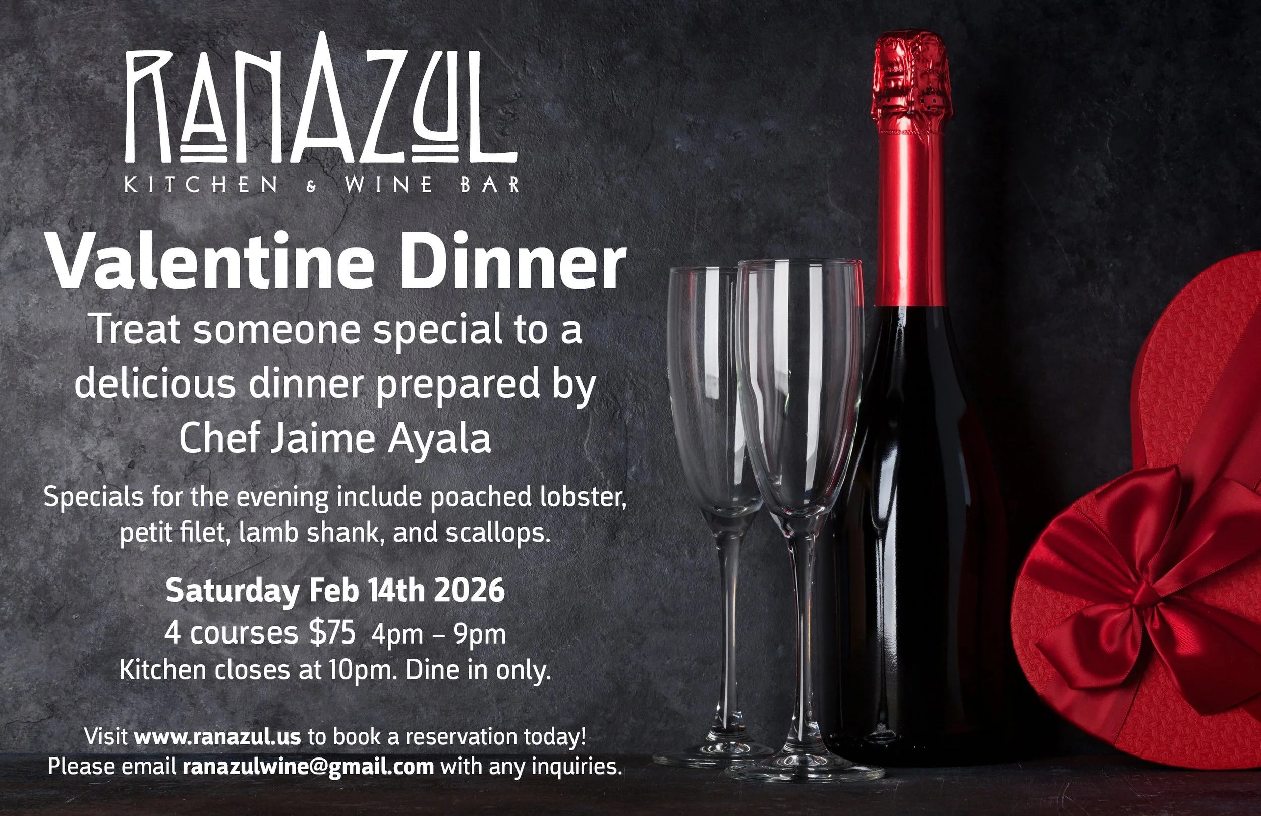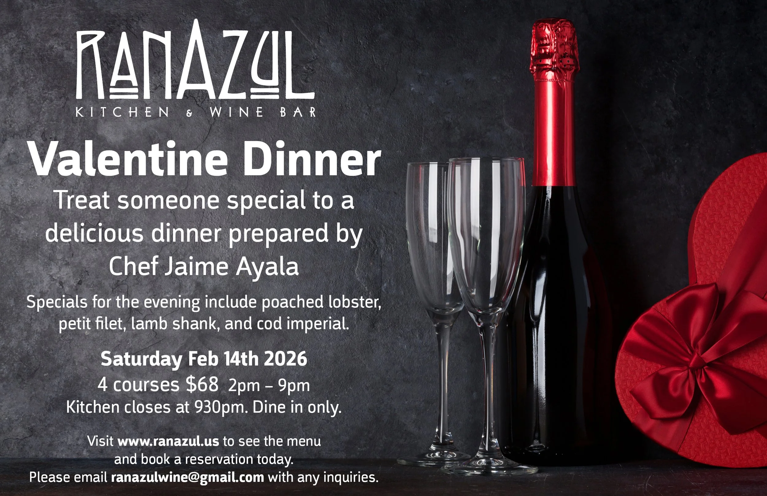 RANAZUL is a place where everyone is welcome to come in, forget the world outside, and enjoy good food, good wine, and good vibes among friends and family. Everyone who visits becomes a part of the RANAZUL family.